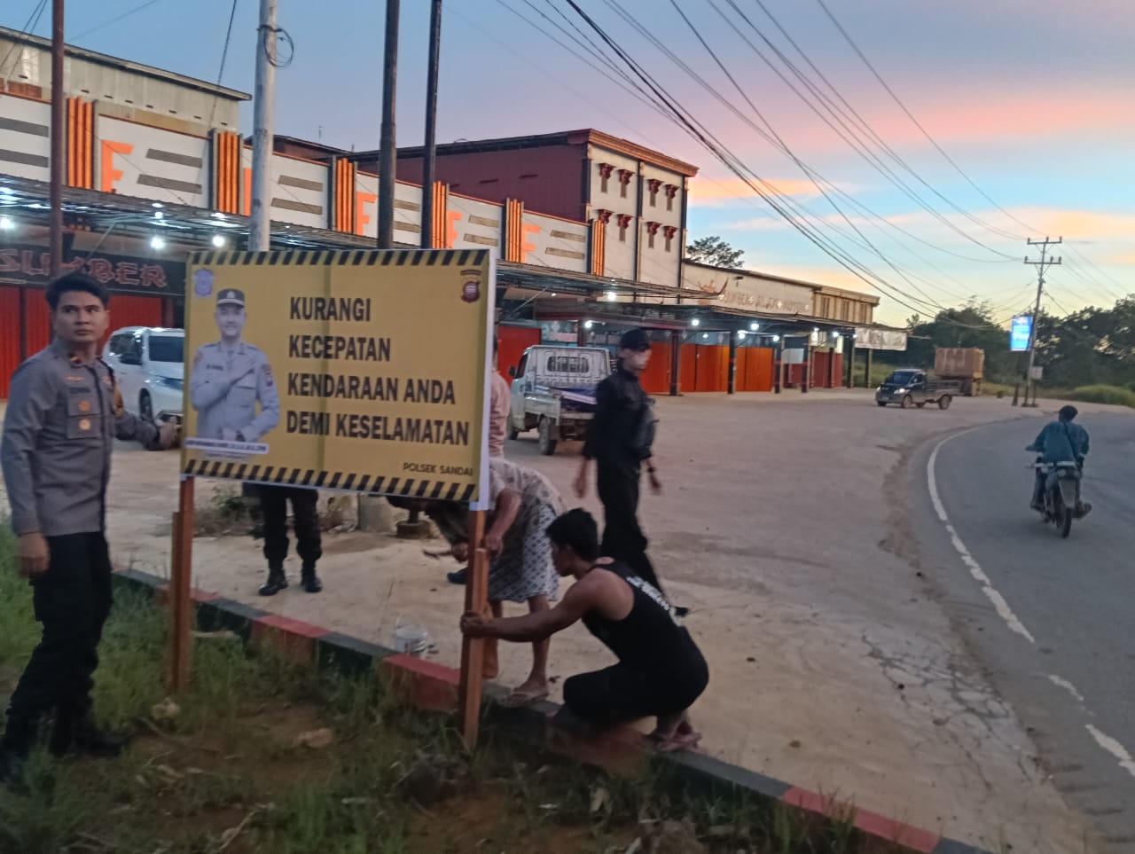 swarabhayangkara.com, Ketapang – Dalam rangka menciptakan situasi keamanan, keselamatan, ketertiban, dan kelancaran lalu lintas (Kamseltibcarlantas) menjelang perayaan Natal dan Tahun Baru (Nataru) 2025–2026, Kapolsek Sandai Ipda Fransiscus Edwin, S.Tr.K., M.Si bersama anggota melaksanakan kegiatan pemasangan banner himbauan kepada masyarakat, Rabu (17/12/2025).