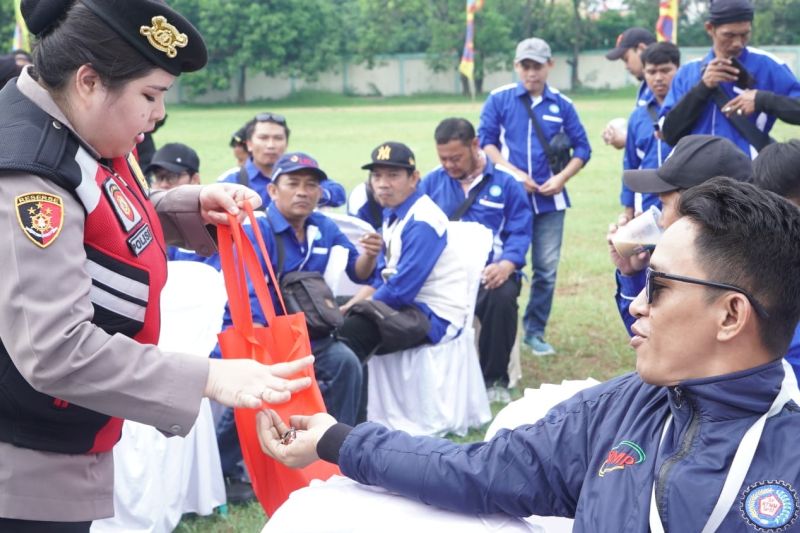 Salah satu pelayanan humanis Polwan Polres Jakarta Utara adalah membagikan permen dan air mineral kepada massa buruh.