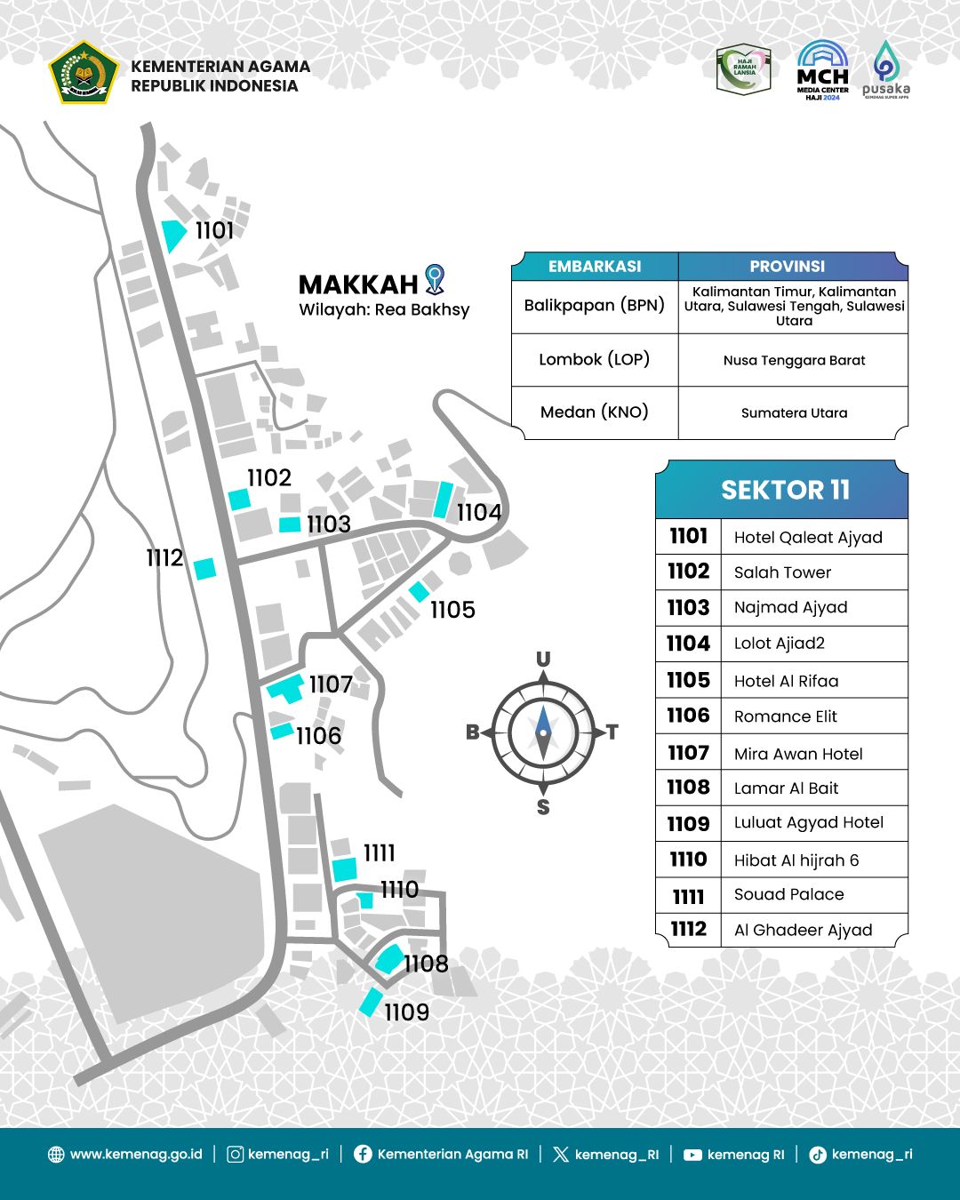 Betikut daftar sebaran wilayah penempatan hotel jemaah haji Indonesia di Makkah dan Madinah: