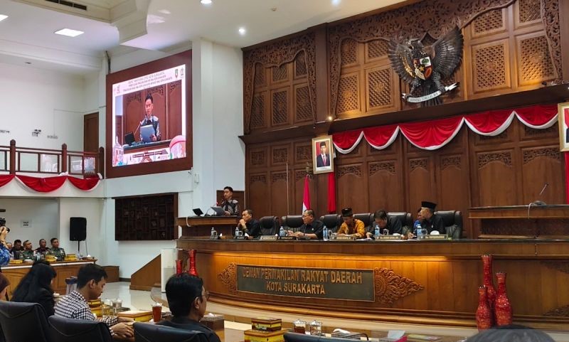 Wakil Ketua DPRD Kota Surakarta Sugeng Riyanto di Solo, Jawa Tengah, Jumat mengatakan dengan pelantikan tersebut maka sidang paripurna dengan agenda pokok pengesahan pemberhentian Wali Kota Surakarta dan pengumuman pengangkatan Wakil Wali Kota Surakarta sebagai Wali Kota Surakarta ditunda.