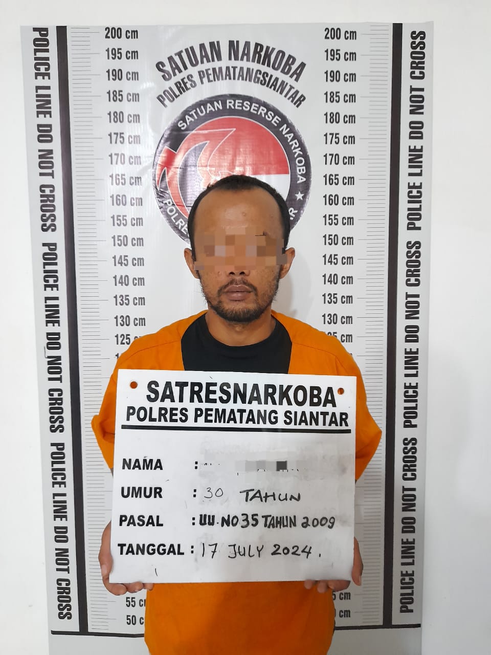 Kapolres Pematangsiantar AKBP Yogen Heroes Baruno SH, SIK melalui Kasat Resnarkoba AKP JH. Pasaribu, SH, MH pada hari Sabtu 20 Juli 2024 mengatakan tersangka itu berinisial AP (30) warga Jalan Meranti Ujung Kelurahan Kahean Kecamatan Siantar Utara Kota Pematangsiantar.