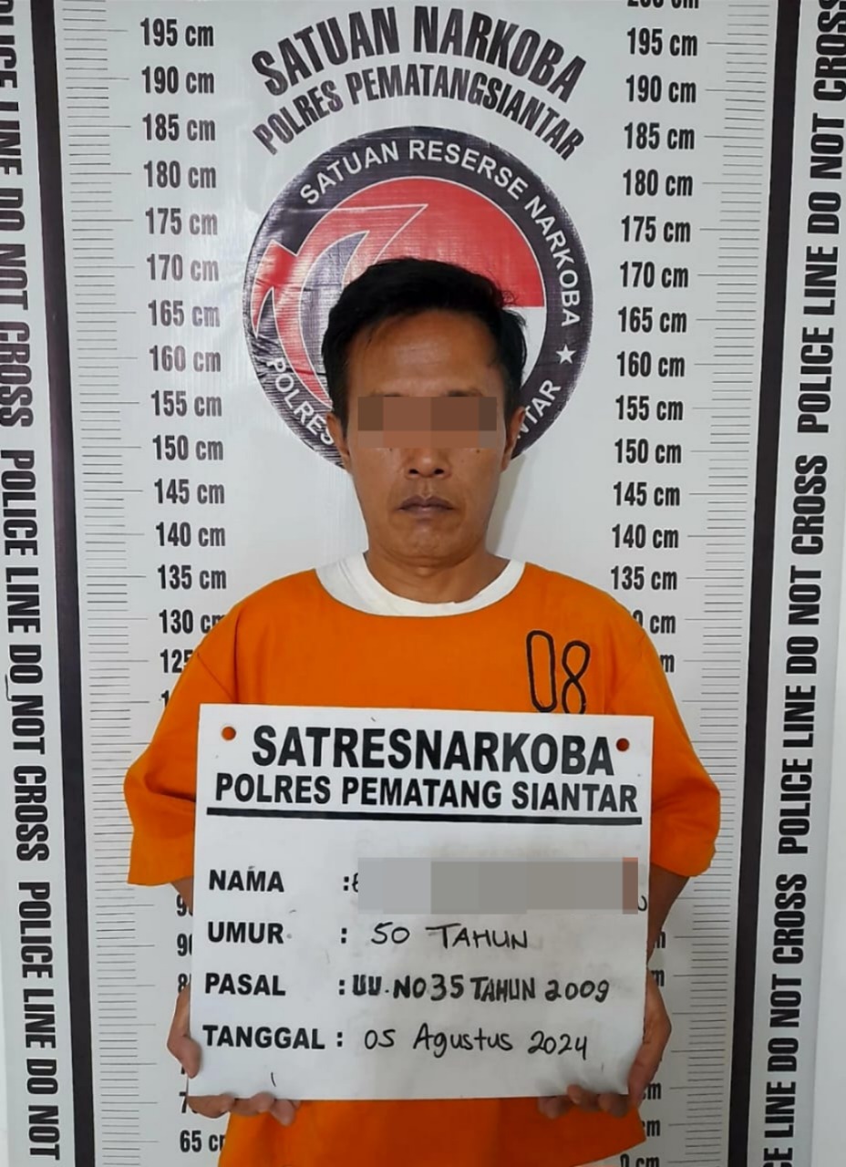 Kapolres Pematangsiantar AKBP Yogen Heroes Baruno SH, SIK melalui Kasat Resnarkoba AKP JH Pasaribu SH, MH pada hari Kamis 08 Agustus 2024 mengatakan laki laki itu berinisial EJT (50) warga alan Parapat Kelurahan Simarimbun Kecamatan Siantar Marimbun Kota Pematangsiantar..