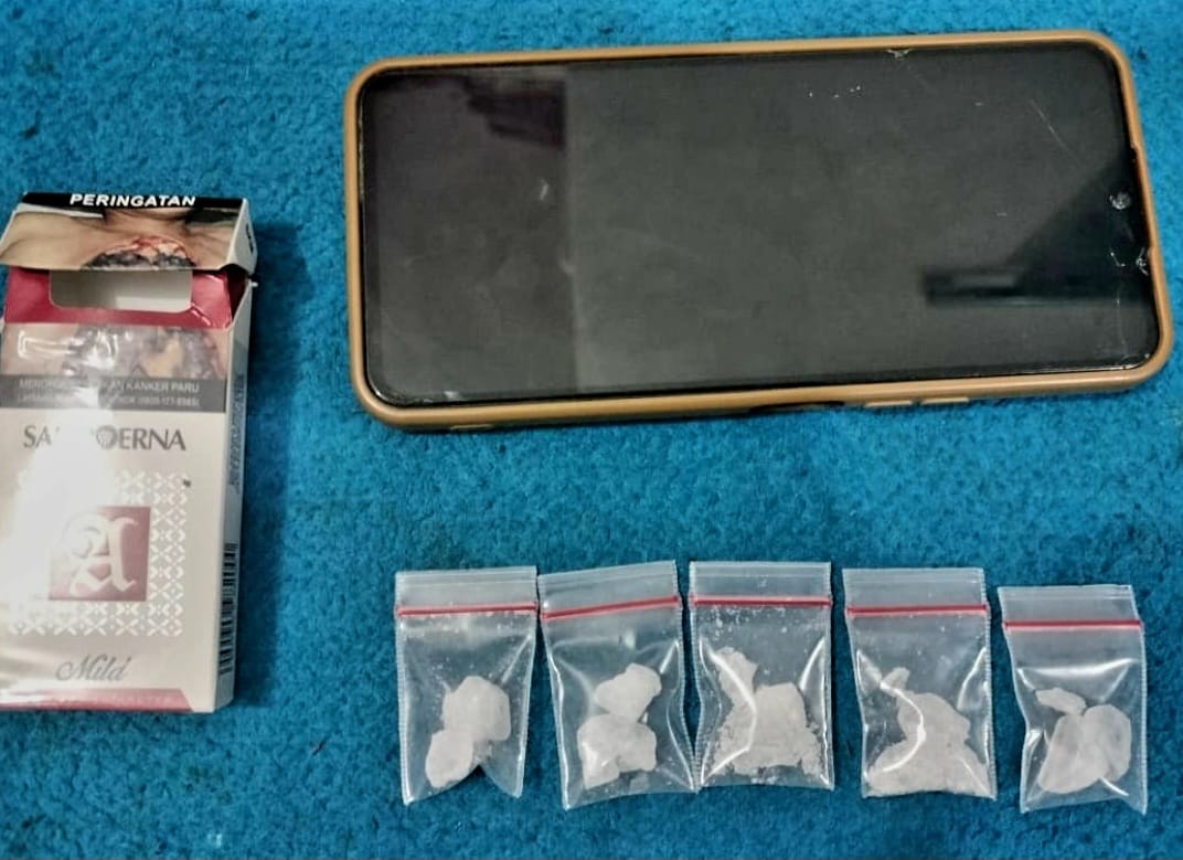 Dari penggeledahan terhadap Tersangka ASS di temukan 1 kotak rokok Sampoerna berisi 5 paket Narkotika jenis sabu berat bruto 6,23 gram dan 1 unit handphone Vivo.