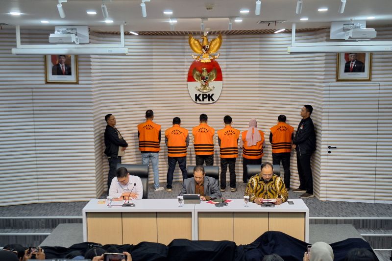 Rompi jingga yang bertuliskan “Tahanan KPK” tersebut, juga menandakan keenam orang tersebut telah resmi ditetapkan sebagai tersangka dan ditahan oleh KPK untuk menjalani proses hukum terkait dugaan tindak pidana korupsi.
