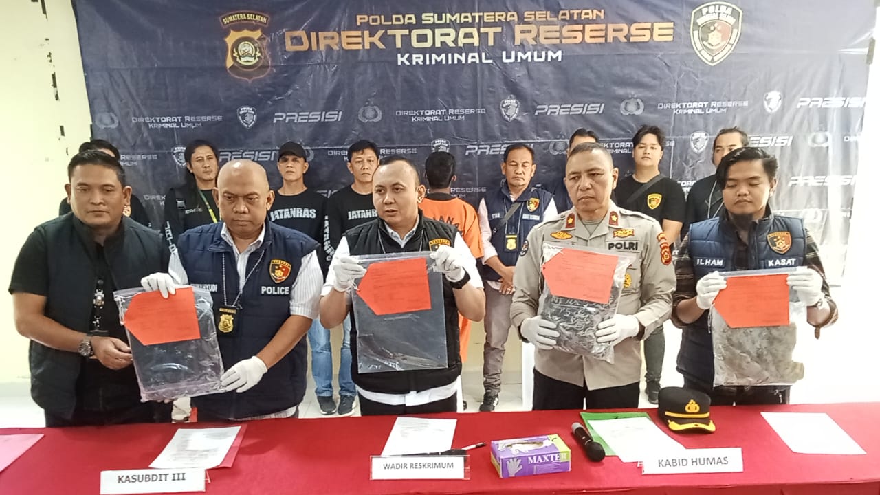 ” Satu tersangka sudah kita tangkap di kontrakannya, merupakan pelaku utama dalam tindak pidana tersebut,”ucap Wakil Direktur Ditreskrimum Polda Sumsel AKBP Indra Arya Yudha SIK didampingi Plt Kasubbid Penmas Bidhumas Polda Sumsel Kompol Menang,SH Kasubdit 3 Jatanras AKBP Tri Wahyudi SH dan Kasat Reskrim Polres Ogan Ilir AKP M Ilham SIK saat jumpa pers, Selasa (08/10/2024).