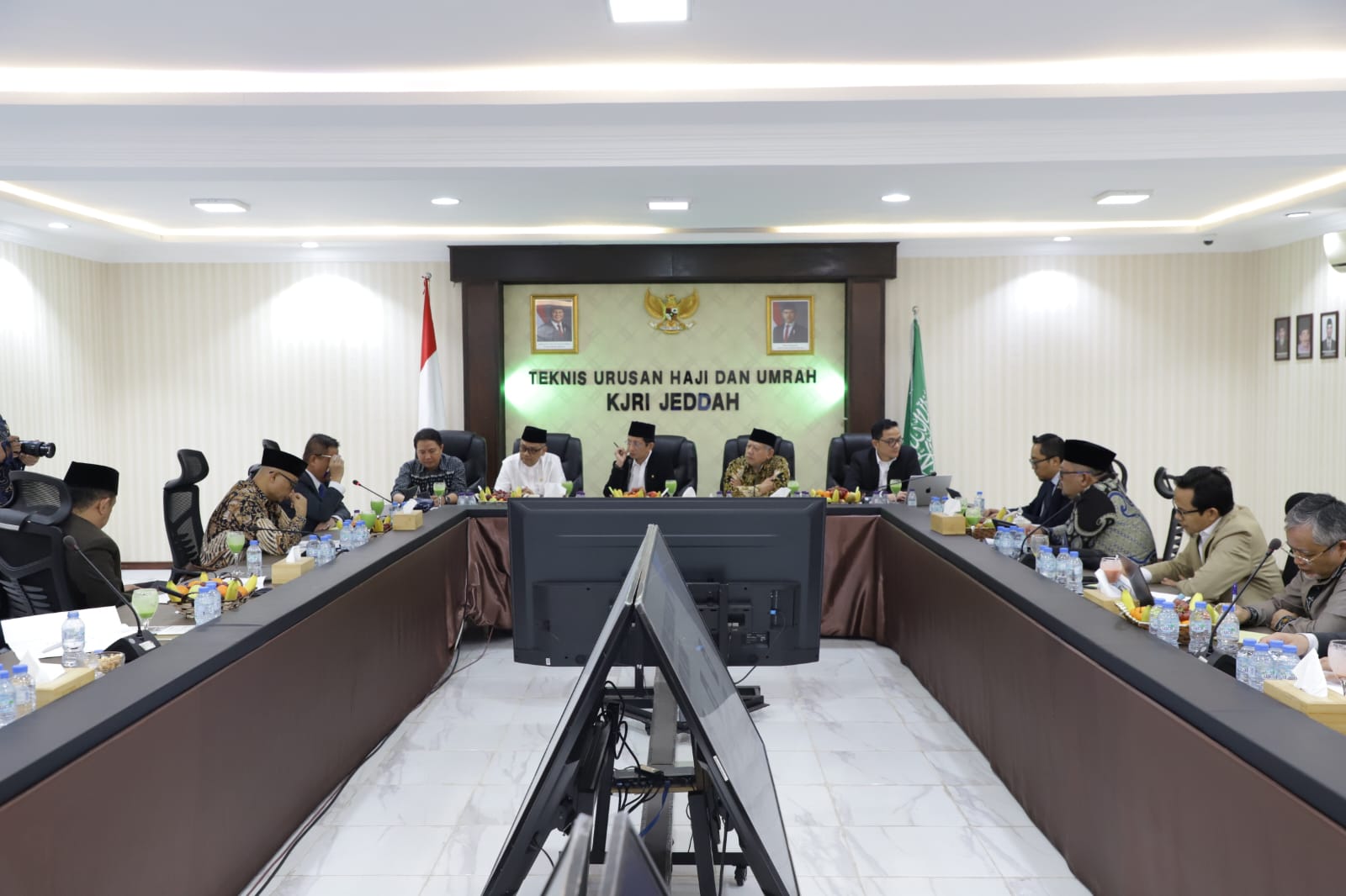 Rapat dimulai dengan evaluasi, timeline, dan progres persiapan haji. Salah satu kebijakan baru yang disampaikan oleh Konsul Haji KJRI Jeddah, Nasrullah Jasam, adalah kontrak layanan jangka panjang untuk kesinambungan kualitas pelayanan serta kontrak paket khusus bagi petugas haji di Masyair. Selain itu, Kepala BPKH Fadlul Imansyah menegaskan komitmen mendukung kualitas penyelenggaraan haji dari sisi pendanaan, sementara Konjen RI Yusron Ambary memaparkan perlindungan jemaah dan sosialisasi visa haji.
