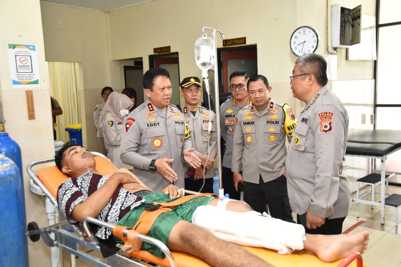 Ambon, 26/11 (MSB) – Kepala Polda Maluku, Inspektur Jenderal Polisi Eddy S Tambunan, didampingi Wakil Kepala Polda Maluku, Brigadir Jenderal Polisi Samudi, menjenguk dua anggotanya yang kecelakaan saat mengawal logistik Pilkada ke TPS Desa Waemite, Kecamatan Fenalaisela, Kabupaten Buru.