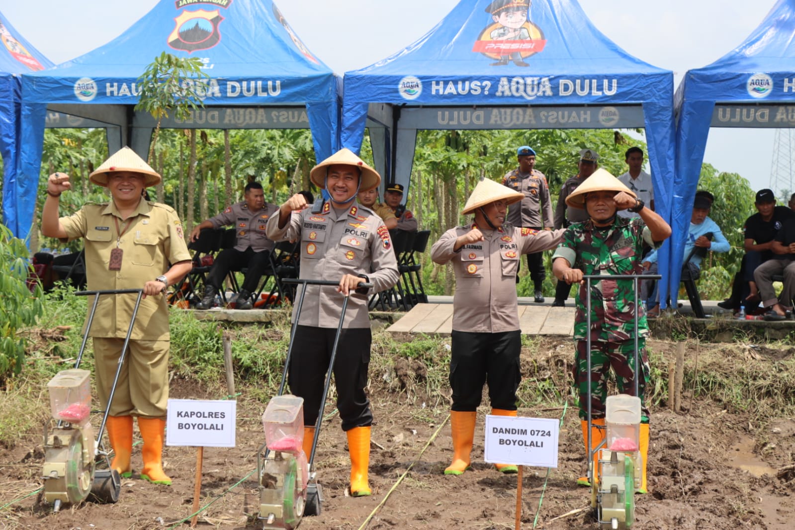 Sebagai bentuk komitmen terhadap petani, penanaman bibit jagung dilakukan secara simbolis oleh Kapolres Boyolali bersama Forkopimda dan para petani di lahan seluas 1.700 meter persegi, dengan metode monokultur. Selain itu, bantuan berupa bibit jagung dan pupuk diberikan kepada Kelompok Tani “Tani Bakti Kusumo” untuk mendukung keberhasilan pertanian setempat.