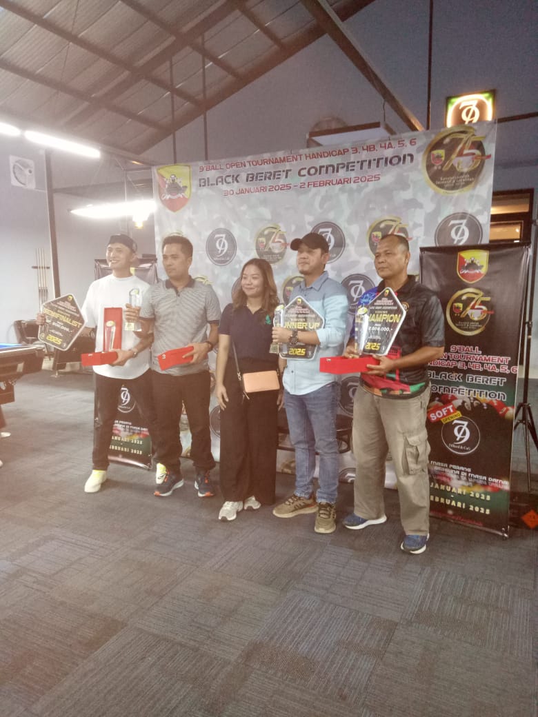 Palembang, – Swarabhayangkara.comDalam rangka HUT ke-75 Kavelri TNI AD menggelar Tournament Billiard Nine Ball Black Barret di 79 Cafe jalan Abusamah nomor 17 Sukajaya Palembang, Minggu (2/2).