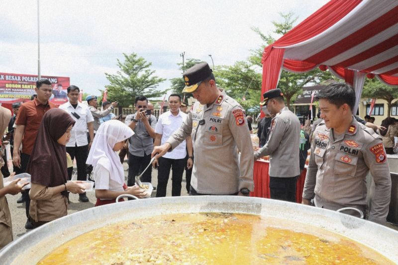 “Kegiatan ini bertujuan untuk memastikan anak-anak mendapatkan asupan gizi yang seimbang dan berkualitas, makan bergizi gratis ini adalah Program Presiden Parbowo Subianto dan Wakil Presiden Gibran Rakabuming Raka yang diberikan kepada siswa-siswi di Indonesia,” ujar Kapolda Banten Irjen Pol Suyudi Ario Seto dalam keterangannya di Banten, Jumat.