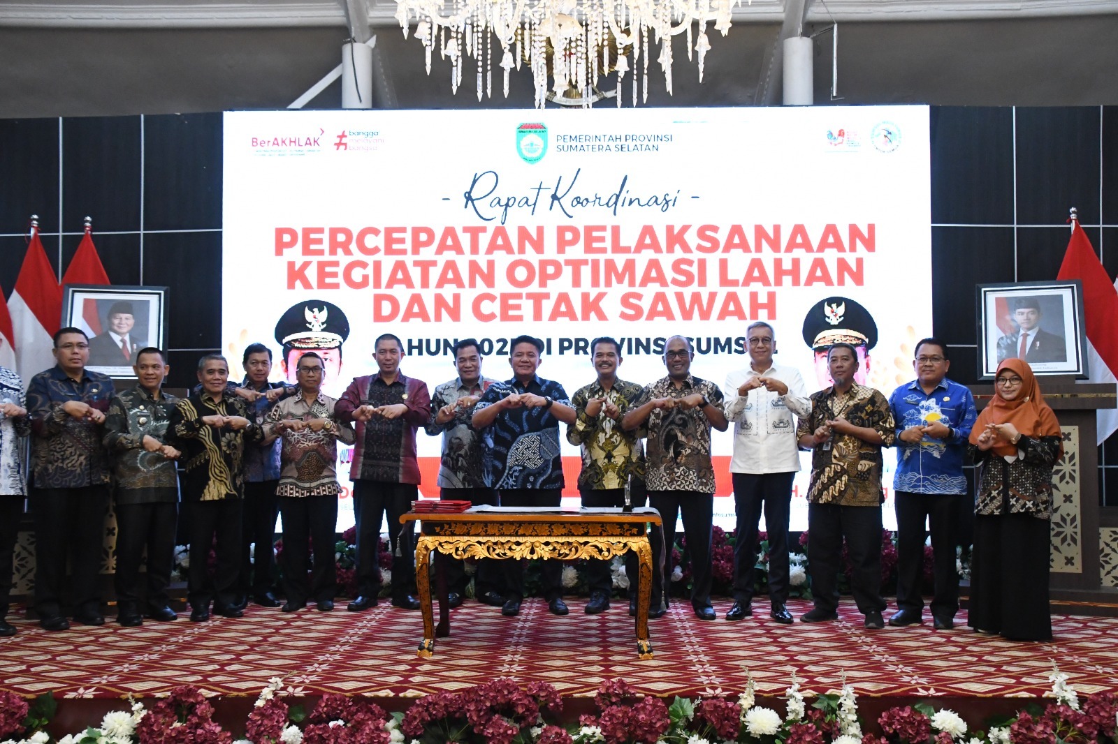 Pada kegiatan Rapat Koordinasi dilaksanakan penandatanganan omitmen bersama kegiatan Optimasi Lahan dan Cetak Sawah, penandatanganan MOU antara Universitas Sriwijaya dan Gubernur Sumatera Selatan, penandatanganan Kontrak SID kegiatan Optimasi Lahan dan Cetak Sawah Tahun 2025, serta penandatanganan Kontruksi kegiatan Optimasi Lahan Tahun 2025.(Amru)