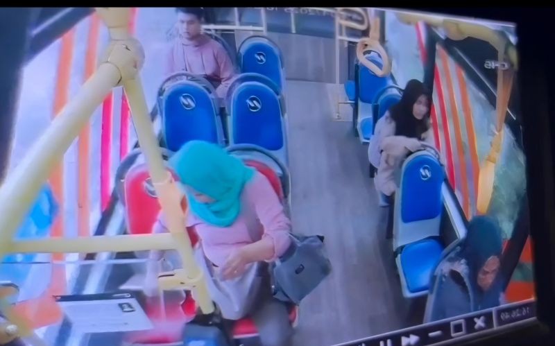 Petugas Transjakarta menjelaskan tas laptop korban telah diambil oleh seorang wanita berkerudung dan wanita tersebut terekam CCTV dalam bus.
