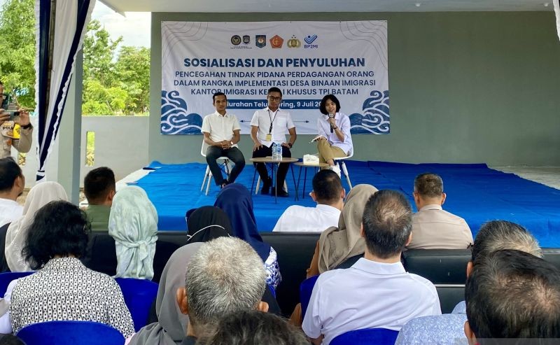 Batam, 09/7 (MSB) – Kantor Imigrasi Kelas I Khusus TPI Batam, Kepulauan Riau (Kepri) mengedukasi masyarakat terkait pencegahan Tindak Pidana Perdagangan Orang (TPPO) di delapan lokasi sebagai bagian dari implementasi program Desa Binaan Imigrasi.
