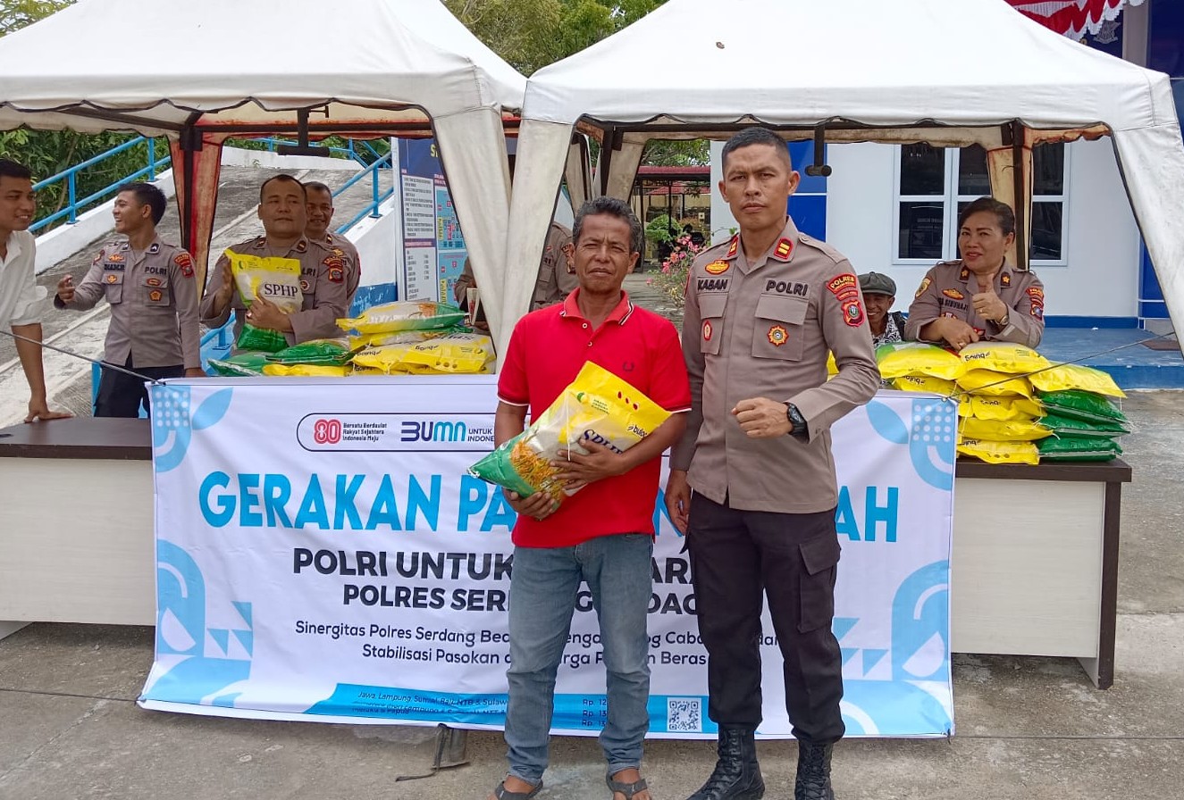 Sergai, 12/8 – Dalam rangka mendukung Program Stabilisasi Pasokan dan Harga Pangan (SPHP) Perum Bulog, Polres Serdang Bedagai menggelar Gerakan Pangan Murah (GPM) di halaman depan Gedung Sat Lantas Mako Polres Sergai, Senin (11/8/2025) pukul 14.00 WIB.