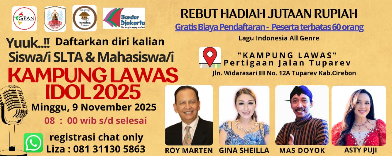 Jakarta,09/10 – Dalam semangat memperingati Hari Pahlawan 2025, warga Cirebon bersiap menyambut sebuah acara spesial: “Kampung Lawas Idol 2025”, ajang pencarian bakat bernyanyi yang digelar gratis dan terbuka untuk umum.