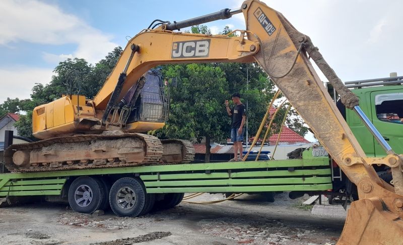 Barang bukti yang turut diserahkan meliputi dua unit alat berat ekskavator, satu unit mesin dompeng, berbagai peralatan tambang seperti pipa, selang, dulang, terpal dan karung berisi material tambang, serta dokumen pendukung hasil pemeriksaan ahli.