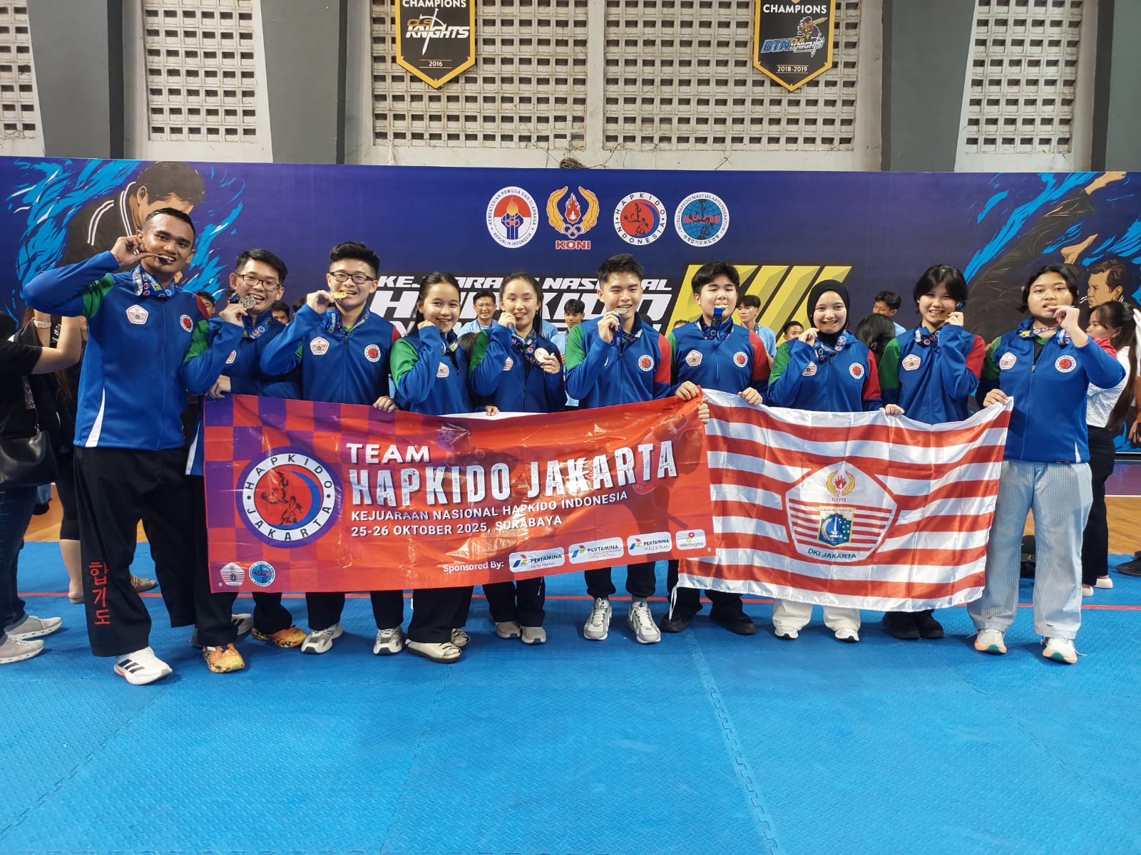 Surabaya 29/10 – Kontingen Hapkido Provinsi DKI Jakarta kembali menorehkan prestasi gemilang pada ajang Kejuaraan Nasional (Kejurnas) Hapkido Indonesia 2025 yang berlangsung di GOR CLS Kertajaya, Surabaya, Jawa Timur, pada 25–26 Oktober 2025.