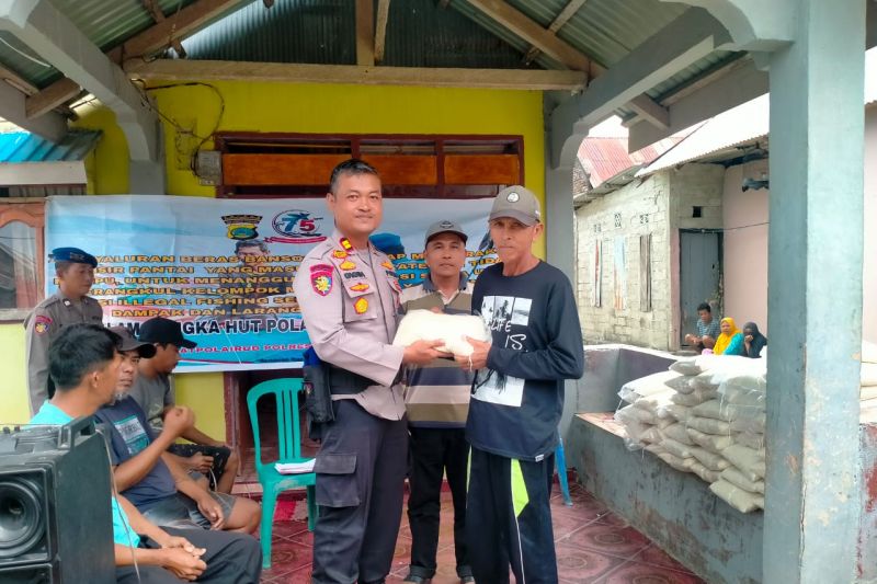 Parigi Moutong, Sulawesi Tengah, 08/11 – Satuan Kepolisian Air dan Udara (Satpolairud) Polres Parigi Moutong, Sulawesi Tengah, menyalurkan 40 paket bantuan sosial kepada para nelayan dan masyarakat pesisir dalam rangka memperingati Hari Ulang Tahun (HUT) ke-75 Korps Polairud.