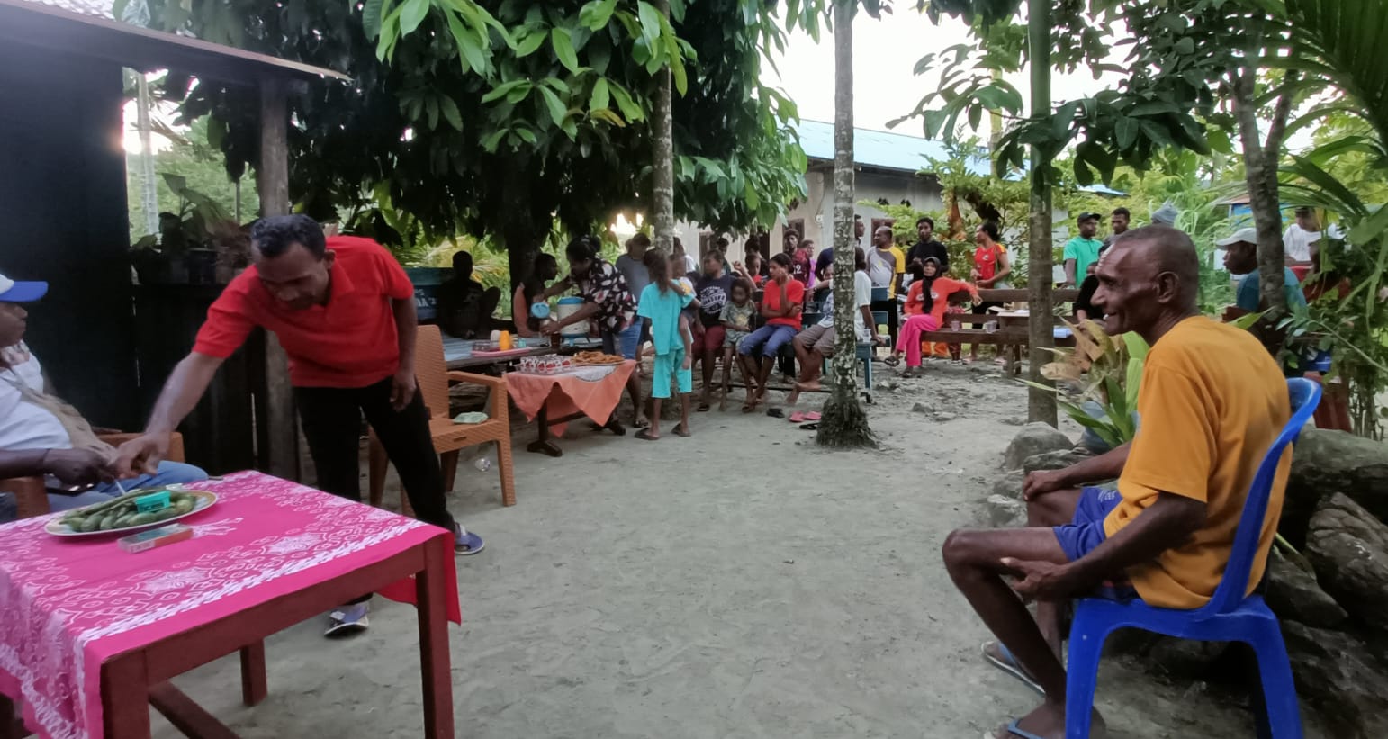 RAJA AMPAT, swarabhayangkara.com – Ketua korwil relawan Sobat GAUL Kabupaten Raja Ampat Marice Faidiiban bersama tim pemenangan penuhi undangan warga Kompleks Lonebi depan perumahan 100 Distrik Waisai Kota.