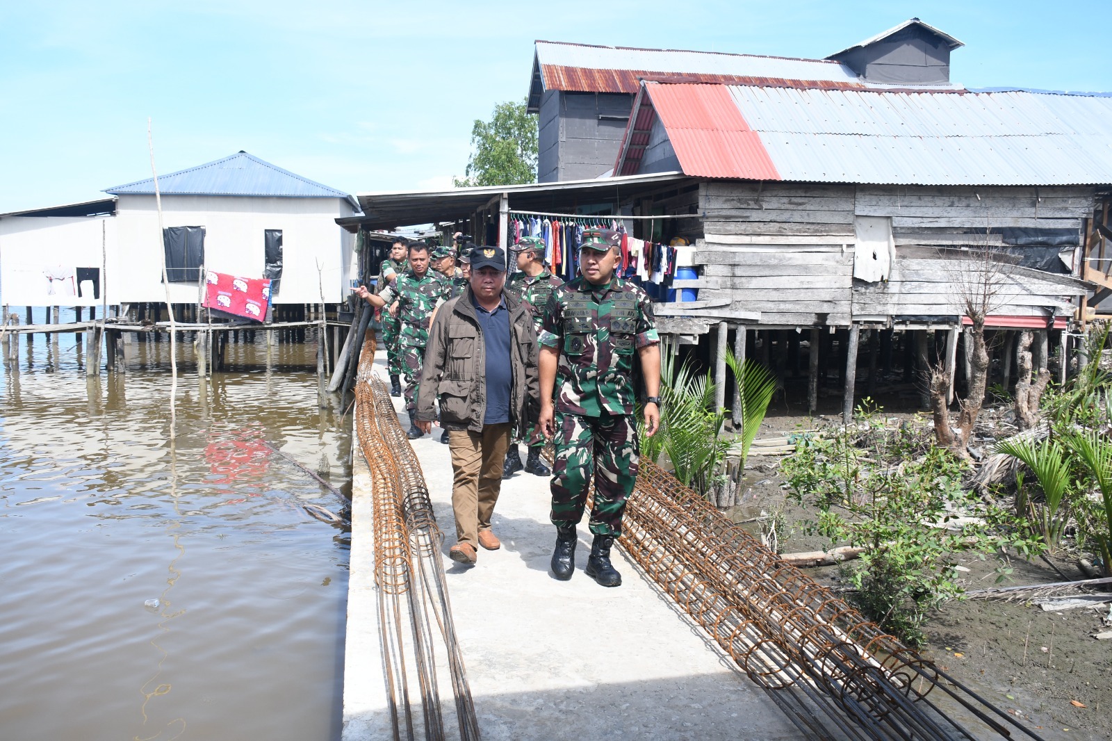 Dalam kunjungan tersebut, Danrem 044/GAPO meninjau secara langsung pembangunan jembatan gantung yang berlokasi di Desa Kuala Dua Belas, Kecamatan Tulung Selapan, Sabtu (18/4/2026).