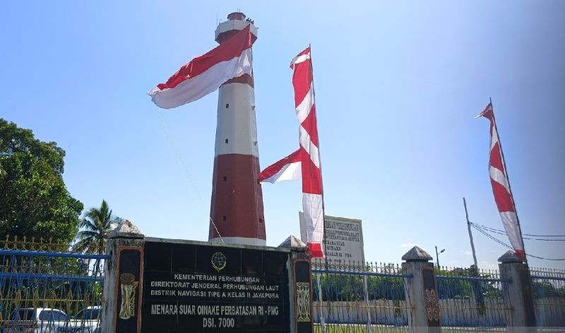 Pengibaran bendera Merah Putih yang dikibarkan di atas mercusuar di dekat dengan zona netral RI-PNG itu menandai peringatan HUT RI ke 80.