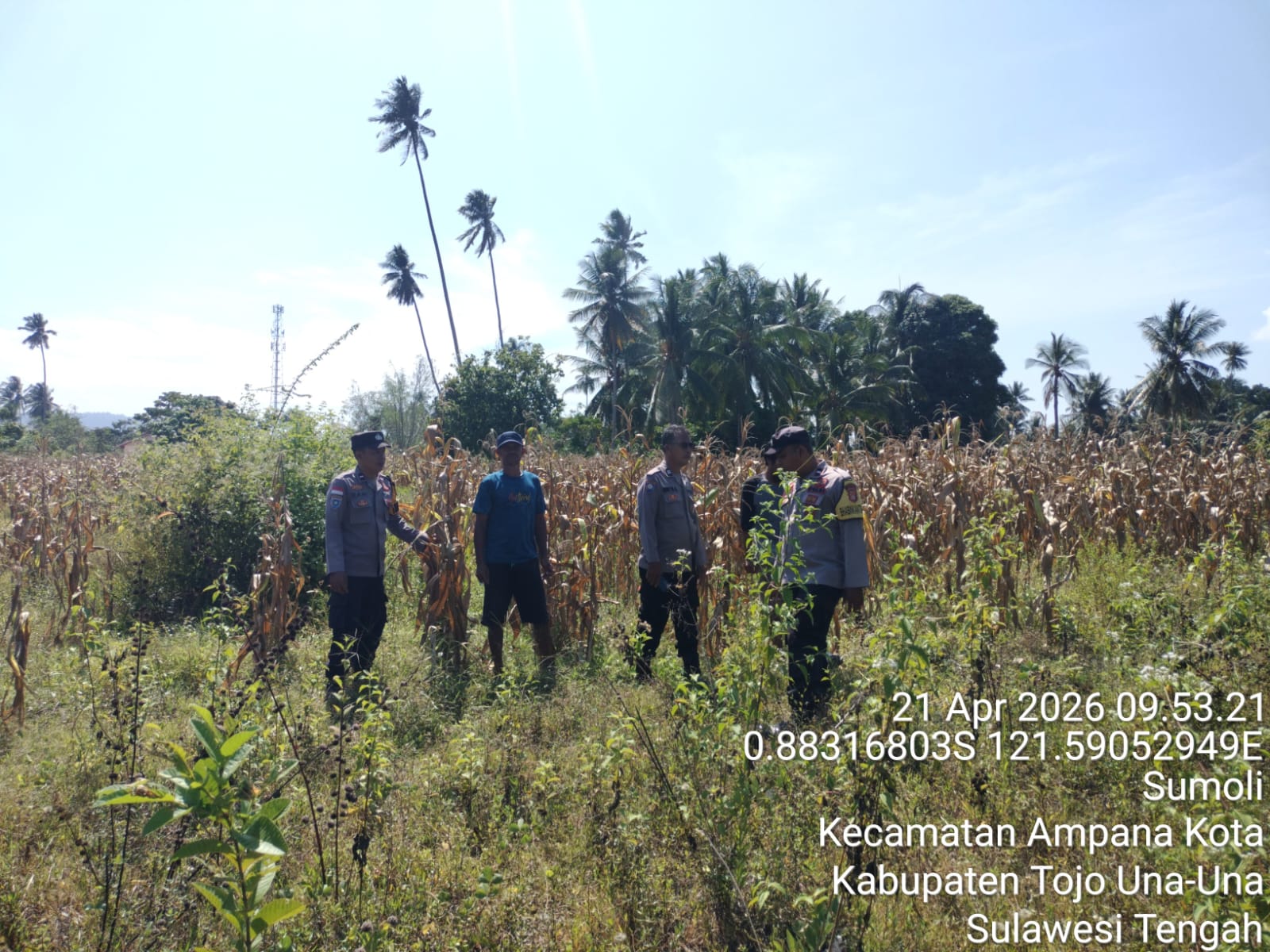 TOUNA, 21/04 (MSB) – Personel Polsek Ampana Kota melakukan peninjauan langsung ke lokasi ketahanan pangan di Desa Sumoli, Kecamatan Ratulindo, Kabupaten Tojo Una-Una, pada Selasa (22/4/2026). Pengecekan ini menyasar lahan jagung seluas dua hektar yang diproyeksikan segera memasuki masa panen.