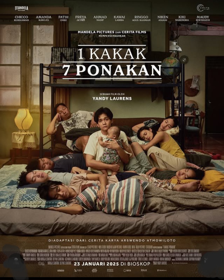 Jakarta, swarabhayangkara – Film keluarga 1 Kakak 7 Ponakan karya Yandy Laurens akan tayang di bioskop mulai 23 Januari 2025. Kisah hangat tentang perjuangan seorang kakak membesarkan tujuh keponakan, dibintangi Chicco Kurniawan dan Amanda Rawles.