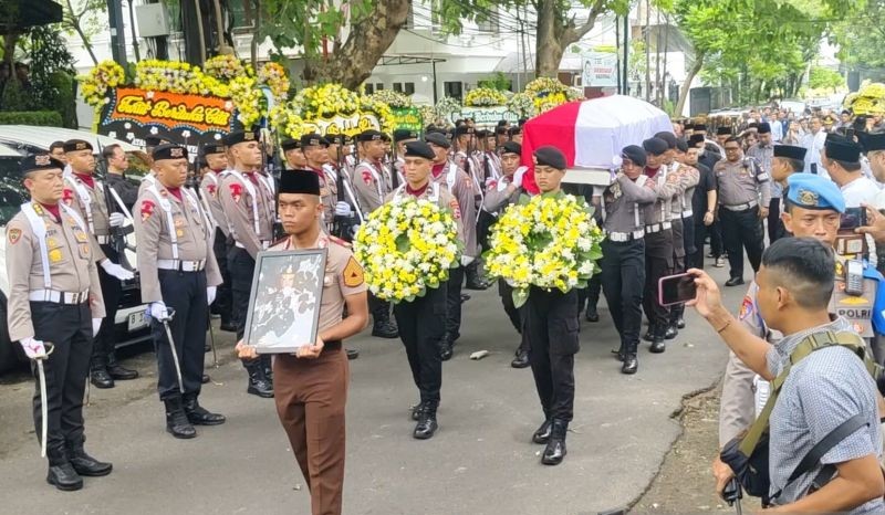 Dengan dipimpin inspektur upacara, jenazah almarhum diantarkan menuju mobil jenazah yang telah bersiap di ujung jalan dengan diiringi rombongan anggota keluarga di belakangnya.