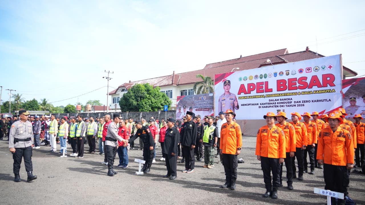 Apel tersebut menjadi momentum strategis dalam menyatukan seluruh elemen bangsa guna menciptakan situasi kamtibmas yang kondusif sekaligus mewujudkan target Zero Karhutla di wilayah Kabupaten OKI. Ratusan peserta dari berbagai latar belakang hadir dalam satu barisan, mulai dari Bhabinkamtibmas, TNI, BPBD, Manggala Agni, hingga organisasi kemasyarakatan dan komunitas sipil.