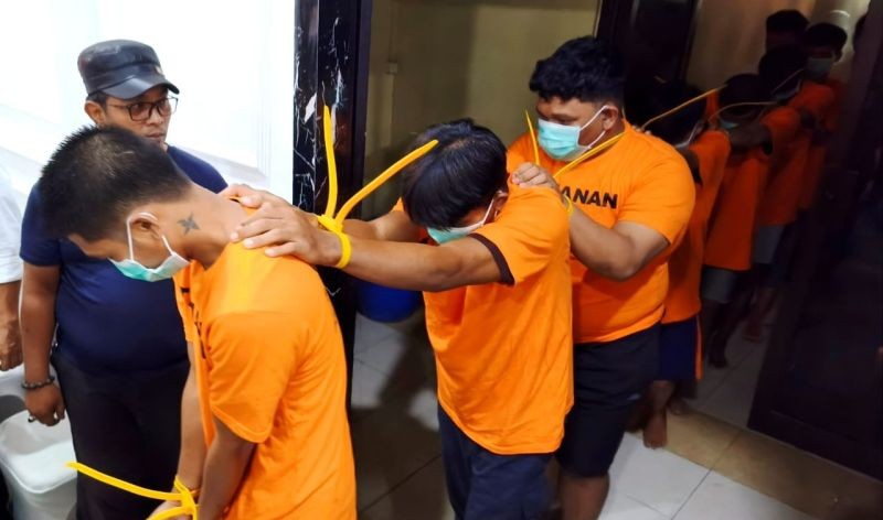 Saat kejadian itu, sebanyak 10 orang mengendarai sepeda motor berboncengan dengan berkeliling kota sambal membawa senjata tajam jenis anak panah disertai busur atau ketapel.