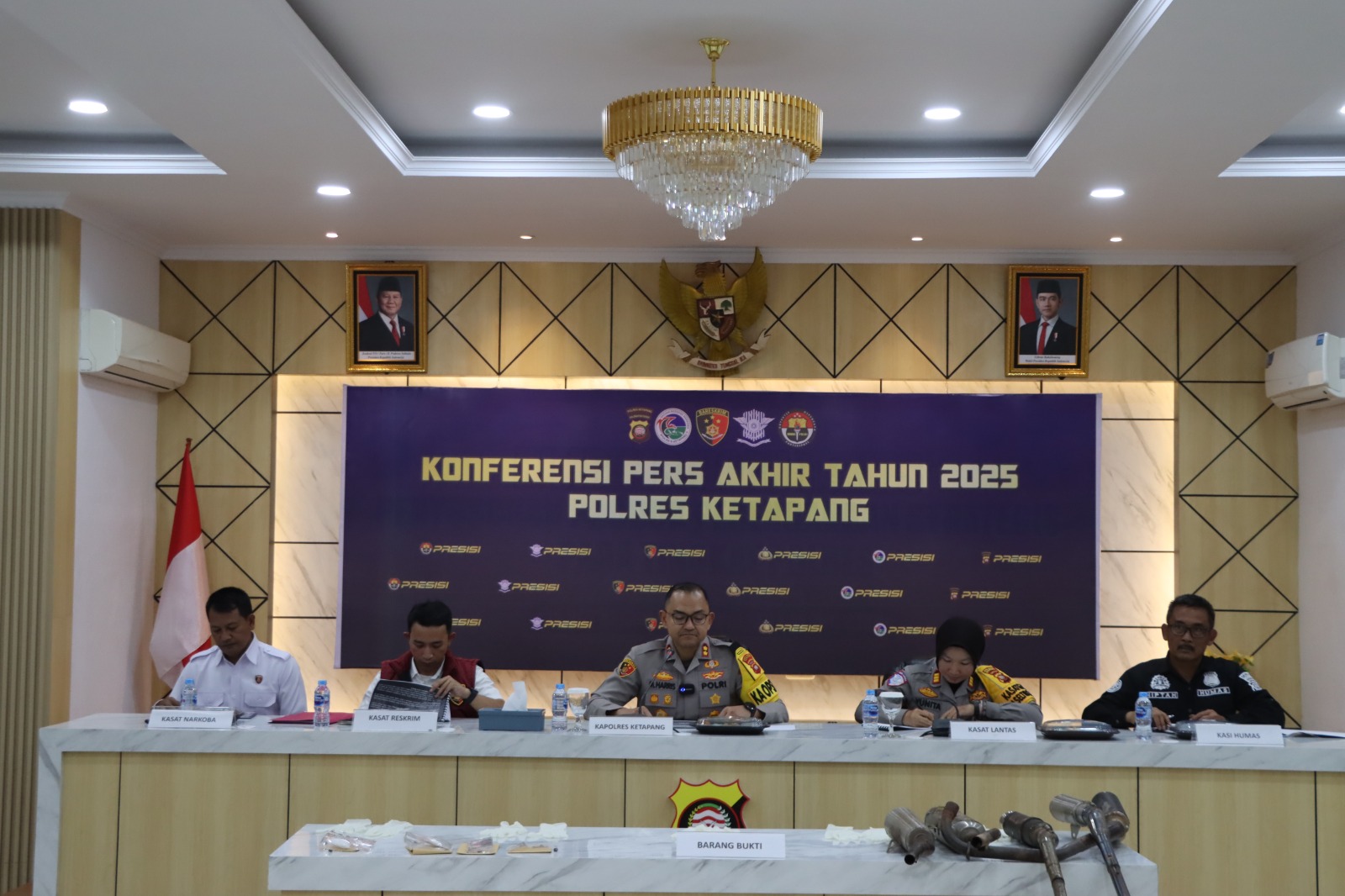 swarabhayangkara.com, Ketapang – Polres Ketapang menggelar konferensi pers akhir tahun 2025 di aula Mapolres Ketapang, Rabu (31/12/2025) Pukul 14.00 Wib. Kegiatan Konfernsi Pers dipimpin langsung Kapolres Ketapang AKBP Muhammad Harris, S.H., S.I.K., M.I.K., CPHR, serta dihadiri langsung sejumlah pejabat utama Polres Ketapang dan seluruh awak media di Kabupaten Ketapang.