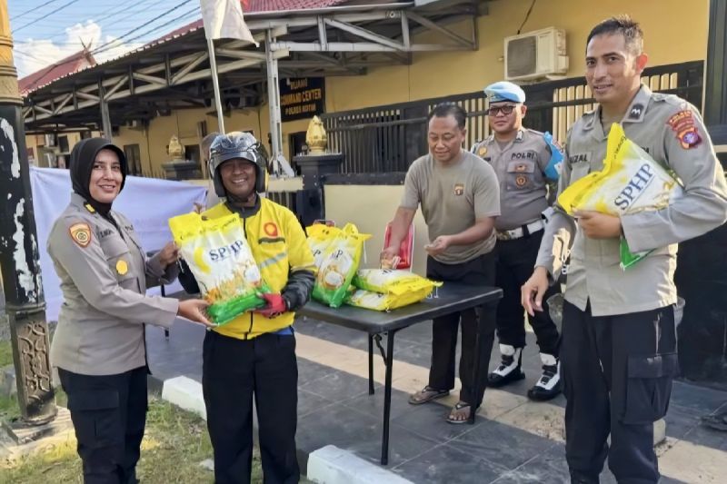 Kotawaringim Timur, Kalteng, 14/8 – Kepolisian Resor Kotawaringin Timur (Kotim), Kalimantan Tengah, membantu Bulog dalam upaya menekan harga beras yang saat ini naik dengan menyalurkan beras murah.