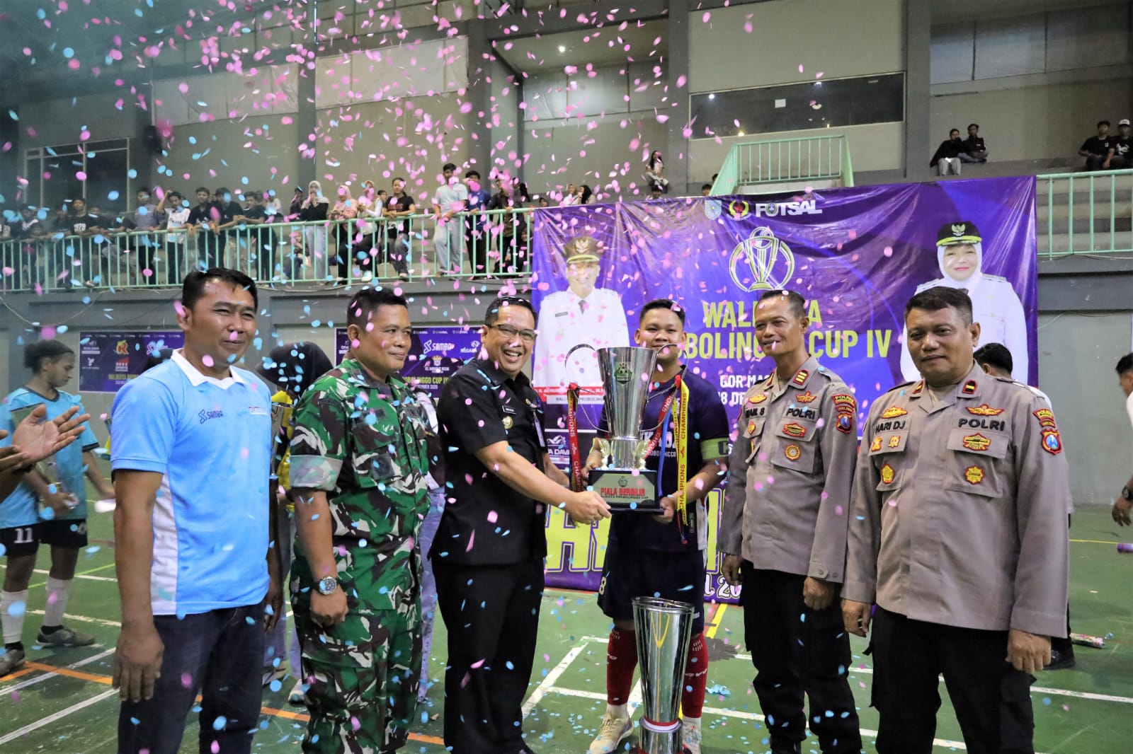 Jawa Timur –swarabhayangkara.com- MengemaSorak sorai dan tepuk tangan meriah menutup rangkaian Turnamen Futsal Wali Kota Probolinggo Cup 2025 yang digelar di GOR Mastrip, Kamis (18/12). Ajang yang berlangsung sejak Sabtu (13/12) itu resmi ditutup dengan penyerahan trofi kepada para pemenang oleh Wali Kota Probolinggo dr. Aminuddin, didampingi Kepala Dinas Kepemudaan, Olahraga dan Pariwisata (Dispopar) Kota Probolinggo, M. Abbas.