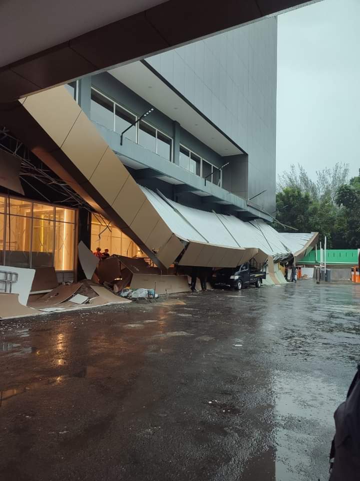 Kanopi Merdeka Mall Siantar yang dikenal dengan eks gedung GOR yang baru dibangun ambruk akibat hujan deras disertai dengan angin yang sangat kencang sekitar pukul 14³⁰ WIB, Selasa/29/10/2024